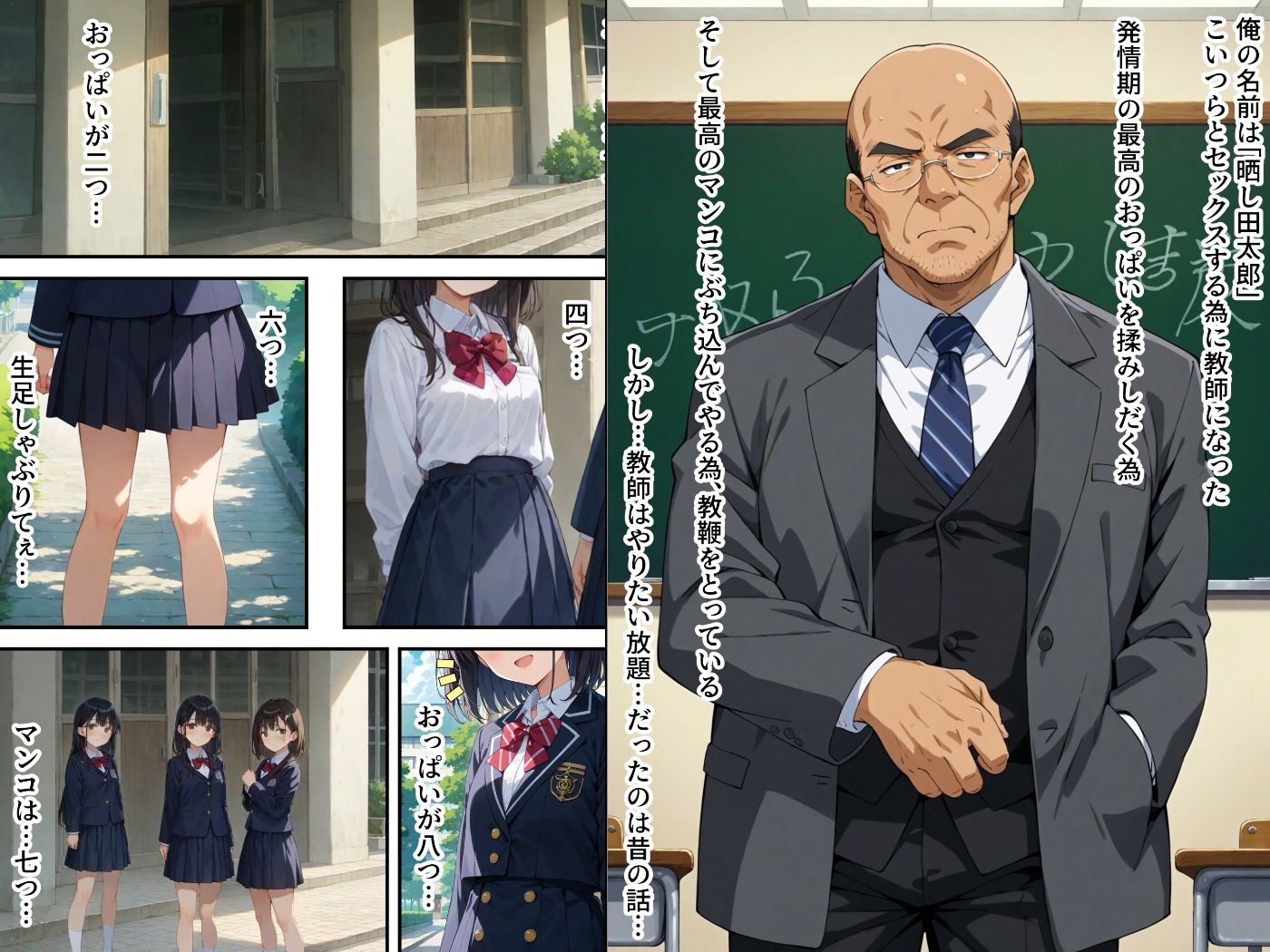 女子生徒とセックスをする為だけに教師になった男、「晒し田太郎」。