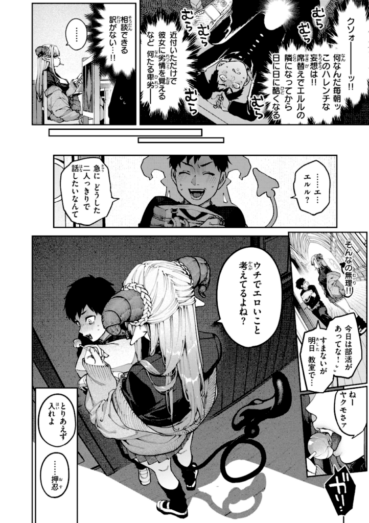 異種族たちと共生する世界。風紀委員の八雲(やくも)の悩みは、隣の席の激エロサキュバスギャル・エルルに毎日欲情してしまうこと!