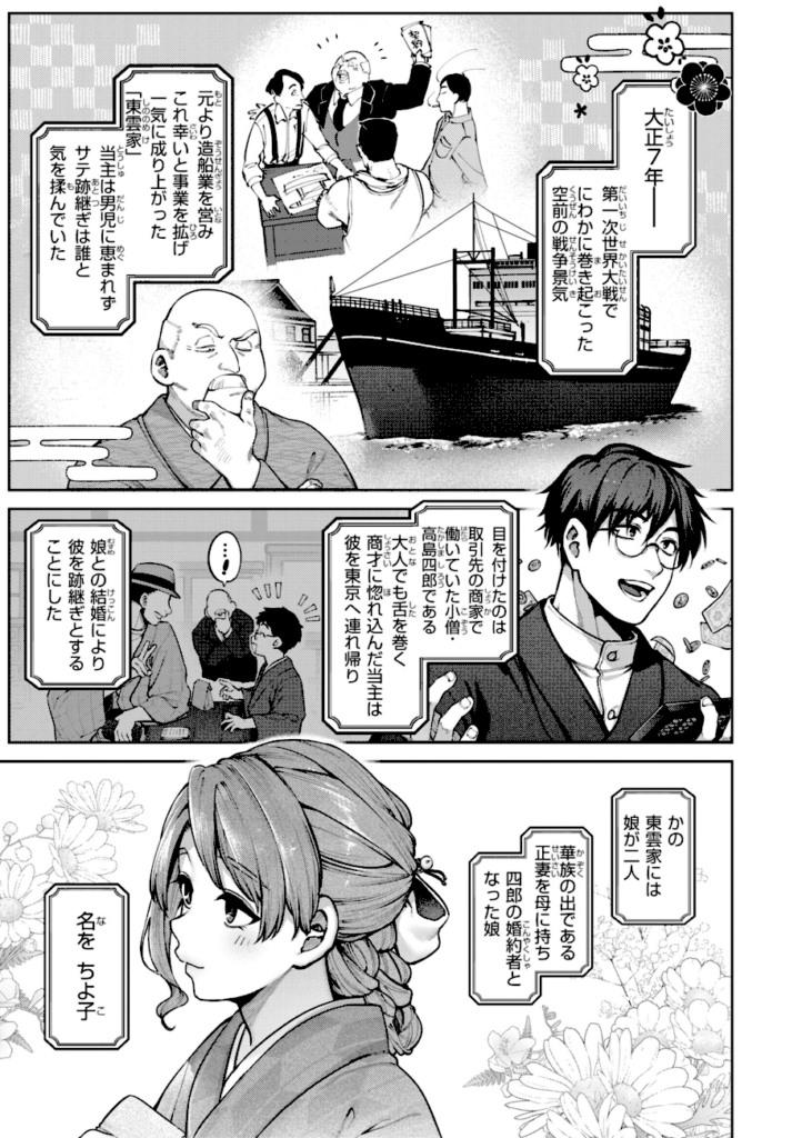 造船業で成り上がった成金・東雲(しののめ)家の婿養子として家に迎えられた四郎(しろう)は、妻になる予定のちよ子ではなく、妾の娘であり爪弾きにされているもう一人の娘・ゆき子と関係を持っていた……。作者:玉ぼん